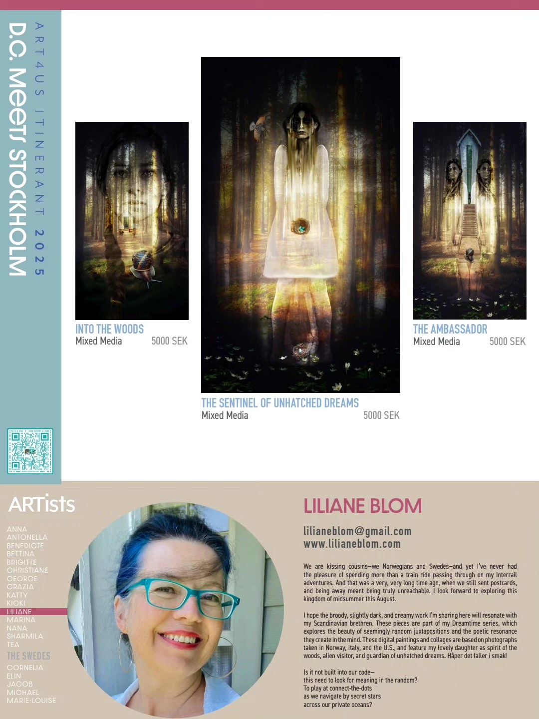 Liliane Blom is an installation artist as well as a classically trained painter and award winning photographer whose distinct style mixes her love of both media into a new one. She calls her fusion of painting and photography digital painting. Her pieces printed on canvas or watercolor paper are later enhanced with oils/pastels and often with gold or silver leaf. Based in Rockville Maryland of French/Norwegian extraction she is a frequent exhibitor in the Washington region.
